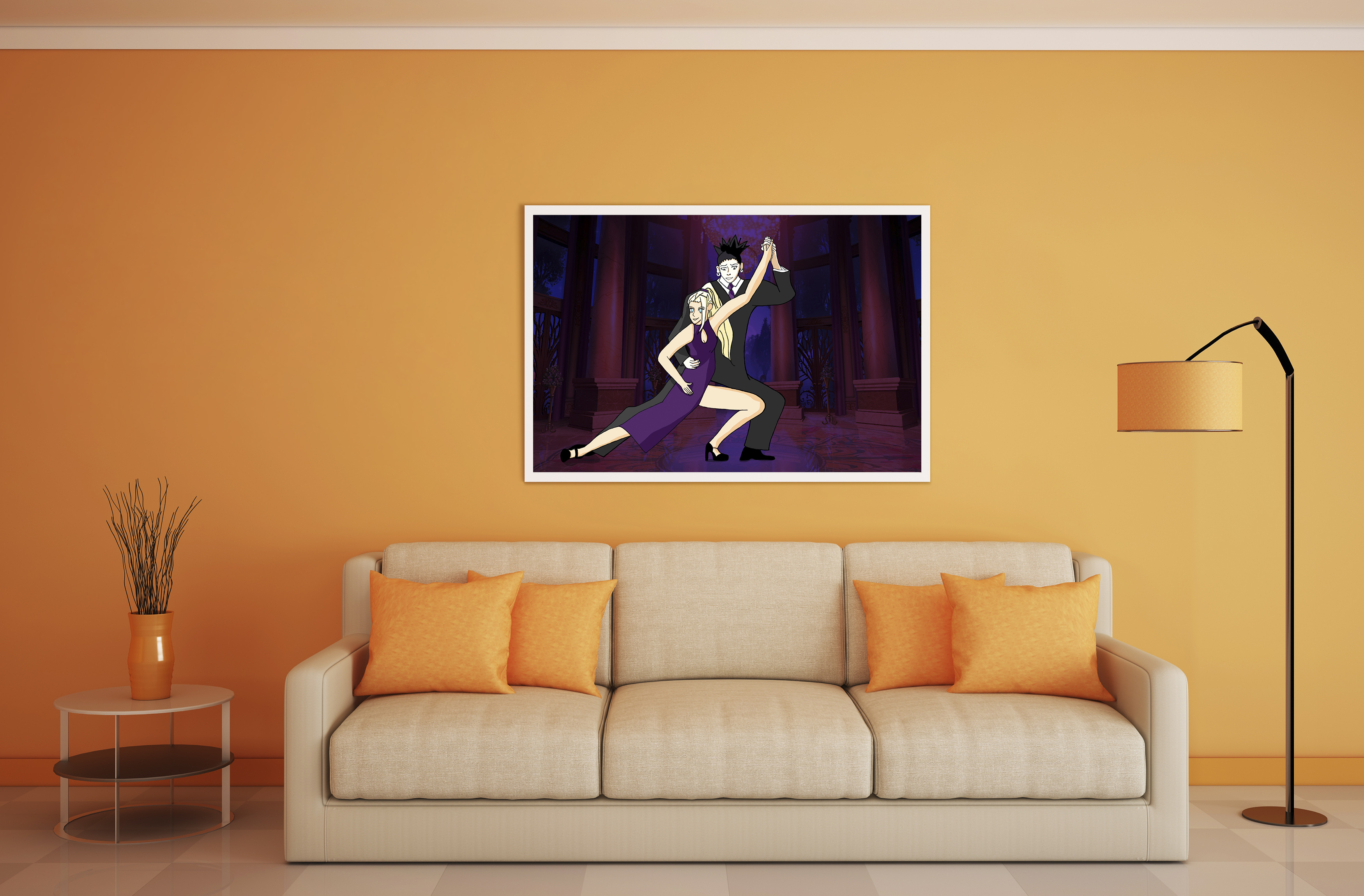 This poster is a 8 x 10 inch signed print. No watermarks are located on the printed copy, neither are there frames included in the purchase of this item. This is my own original art that was drawn by hand and colored in Photoshop.